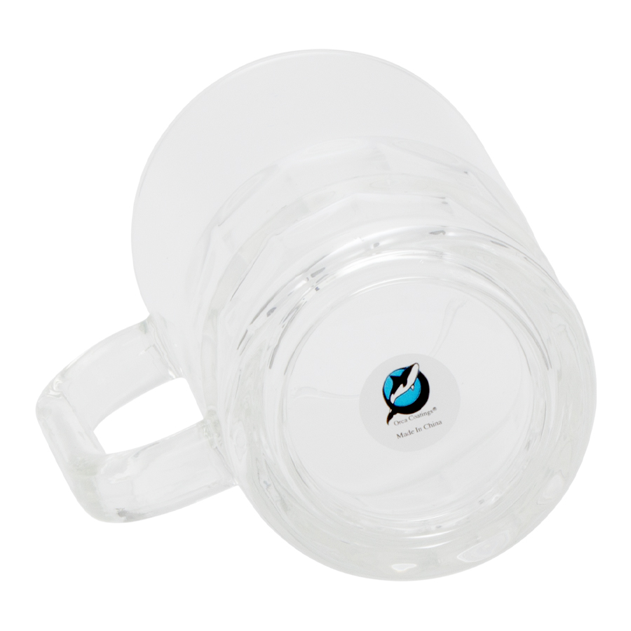 Tazón Cervecero de Vidrio, para Sublimación, para líquidos fríos, con asa. Capacidad 400 ml. Presentación bolsa plástica empavonada + caja de cartón blanco. Calidad Premium ORCA.