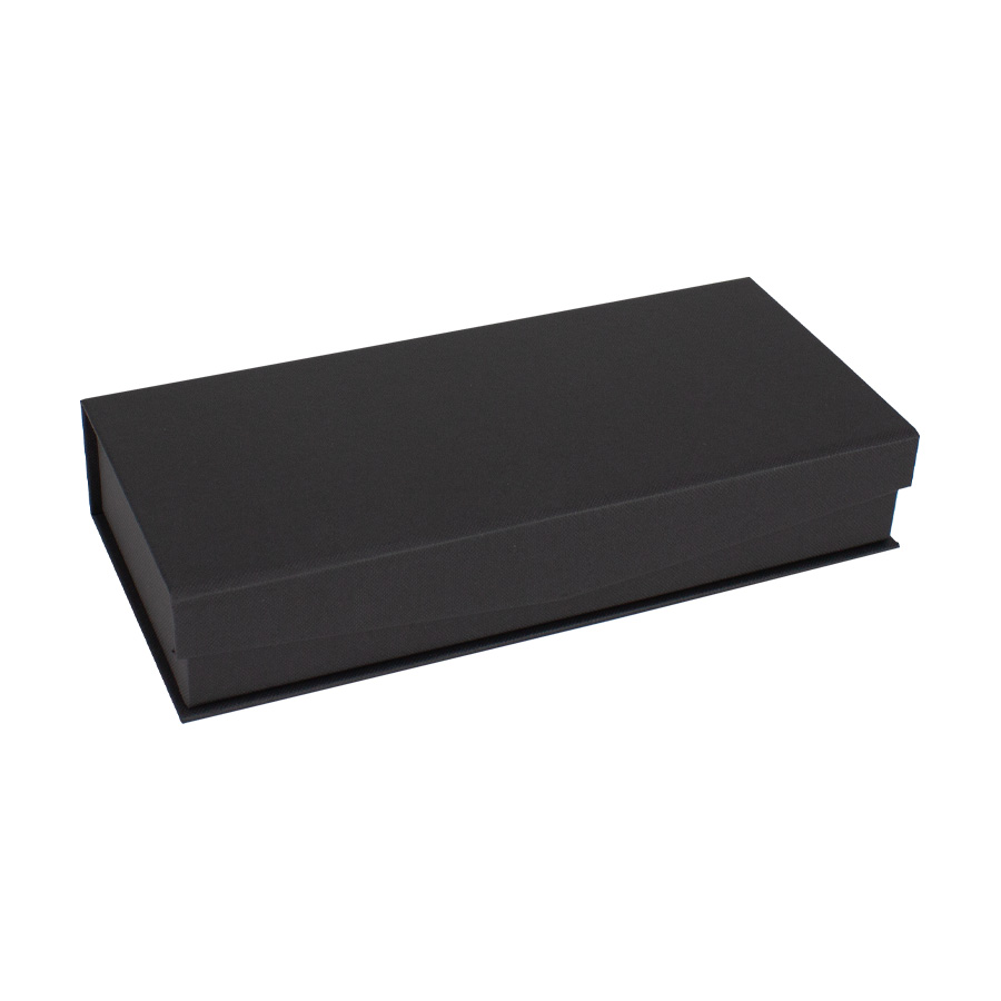 •Presentación: Caja de cartón forrado negro con cierre imantado, interior acolchado de espuma y tela poliéster satinado negro, con troquel.